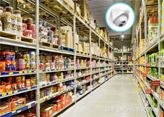 使用吸頂式AP為超市布局無線網(wǎng)絡(luò),美觀大方;在收銀臺、辦公室和倉庫等區(qū)域分別安裝紅外半球攝像機,各出入口、商品區(qū)域配備筒形攝像機,形成無死角監(jiān)控。拓撲中使用PoE交換機通過網(wǎng)線為PoE IPC(網(wǎng)絡(luò)攝像機)和PoE AP供電,可以避免額外布線。本方案支持遠程監(jiān)控。